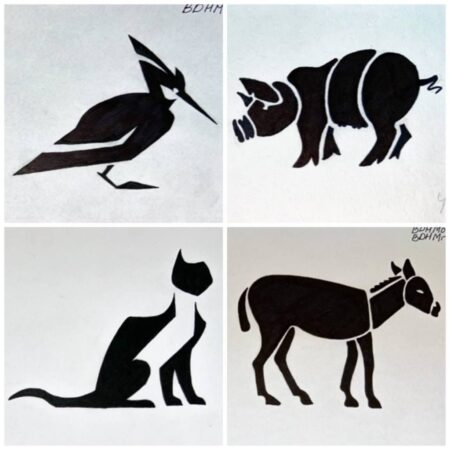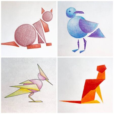 ► вписування чорно-білого стилізованого зображення тварини / птаха з картки в одну з геометричних форм: