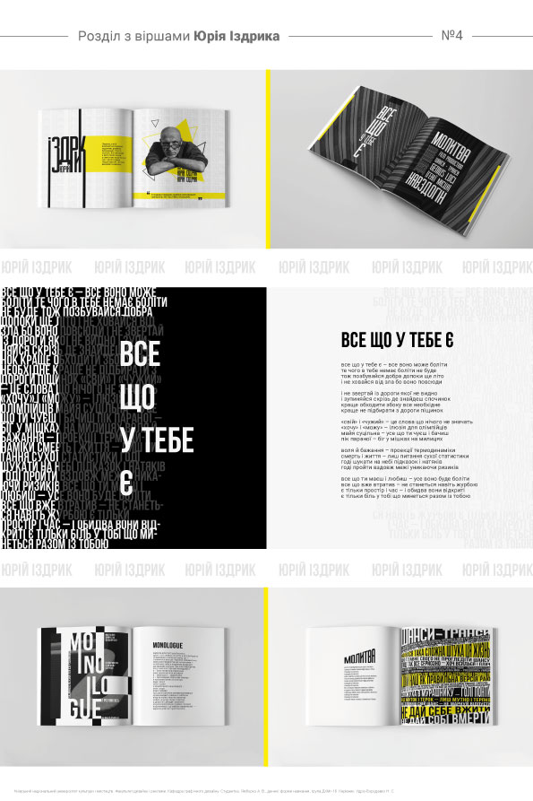 Типографічна збірка віршів Виконала: Ямборко АнастасіяДипломний проєкт бакалавра графічного дизайну. Керівник Наталя Удріс-Бородавко Н.С. кандидат соціологічних наук, доцент.Типографічна збірка віршів.